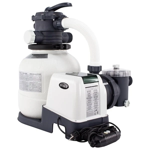 Deze zandfilterpomp bedien je via een timer. Zo kun je de pomp gewoon aan laten staan. Je stelt naar wens een dagdeel in, van bijvoorbeeld 8 uur, waarop de pomp het zwemwater door het filtervat pompt. Dit gebeurt vervolgens telkens automatisch tussen de ingestelde tijden. De pomp wordt verder geleverd met omvormer naar 12 Volt, wat veilig is voor zwembaden. Aan de pomp zit standaard een beveiligde RCD stekker, die automatisch afslaat bij te hoge spanning. Zodra je de pomp gekoppeld hebt met je zwembad, hoef je deze maar in te pluggen, de timer in te stellen, en de Intex zandfilterpomp doet de rest.
