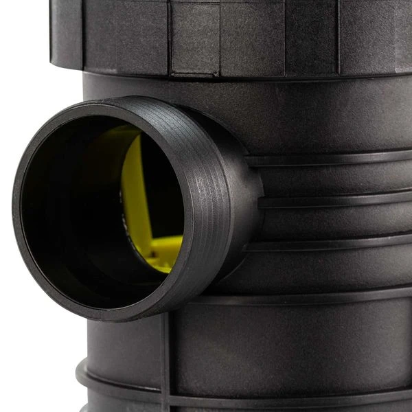 De standaard leidingwerkaansluiting van deze pomp is 63mm aan de aanzuigkant en 50mm aan de perskant. Neem eventueel extra verloopstukken om de aansluiting passend te maken met je leidingwerk. Verder wordt er standaard een stekker meegeleverd, dus daar hoef je je geen zorgen over te maken.
