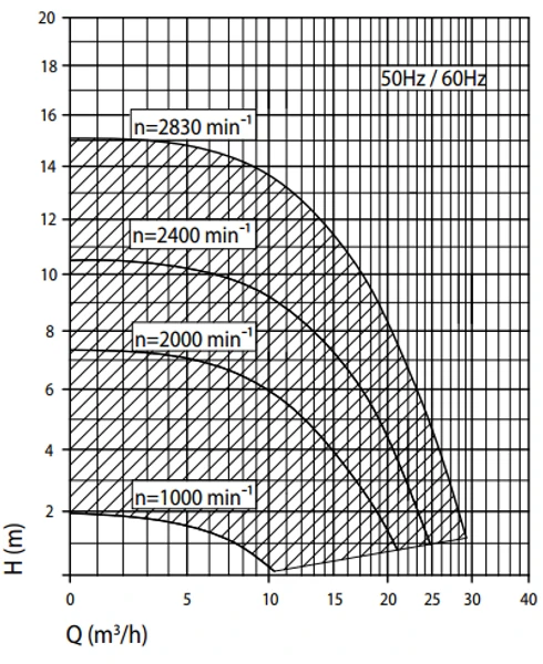 - Zelfaanzuigend tot 3 meter boven de waterspiegel en 12 meter van het zwembad af