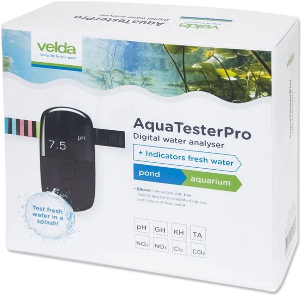 De AquaTesterPro elektronische watermeter van Velda maakt het heel eenvoudig om alle belangrijke waterwaarden te meten. Dit unieke apparaat meet binnen enkele seconden de waarden van je vijver of aquarium. Bovendien kun je het apparaat koppelen met een handige app en de waterwaarden over een langere periode monitoren.