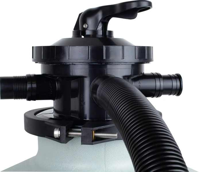 De zandfilterset SP 300 is een zeer gunstig geprijsde budget zandfilterset voor kleine opbouwzwembaden. We adviseren deze filterset voor opbouwzwembaden met een maximale inhoud van 16.000 liter. De filterset is voorzien van een polyethyleen zandfilter in combinatie met een zeer eenvoudige zwembadpomp. Door middel van de 6-weg kraan bedien je gemakkelijk de verschillende standen van het filter.